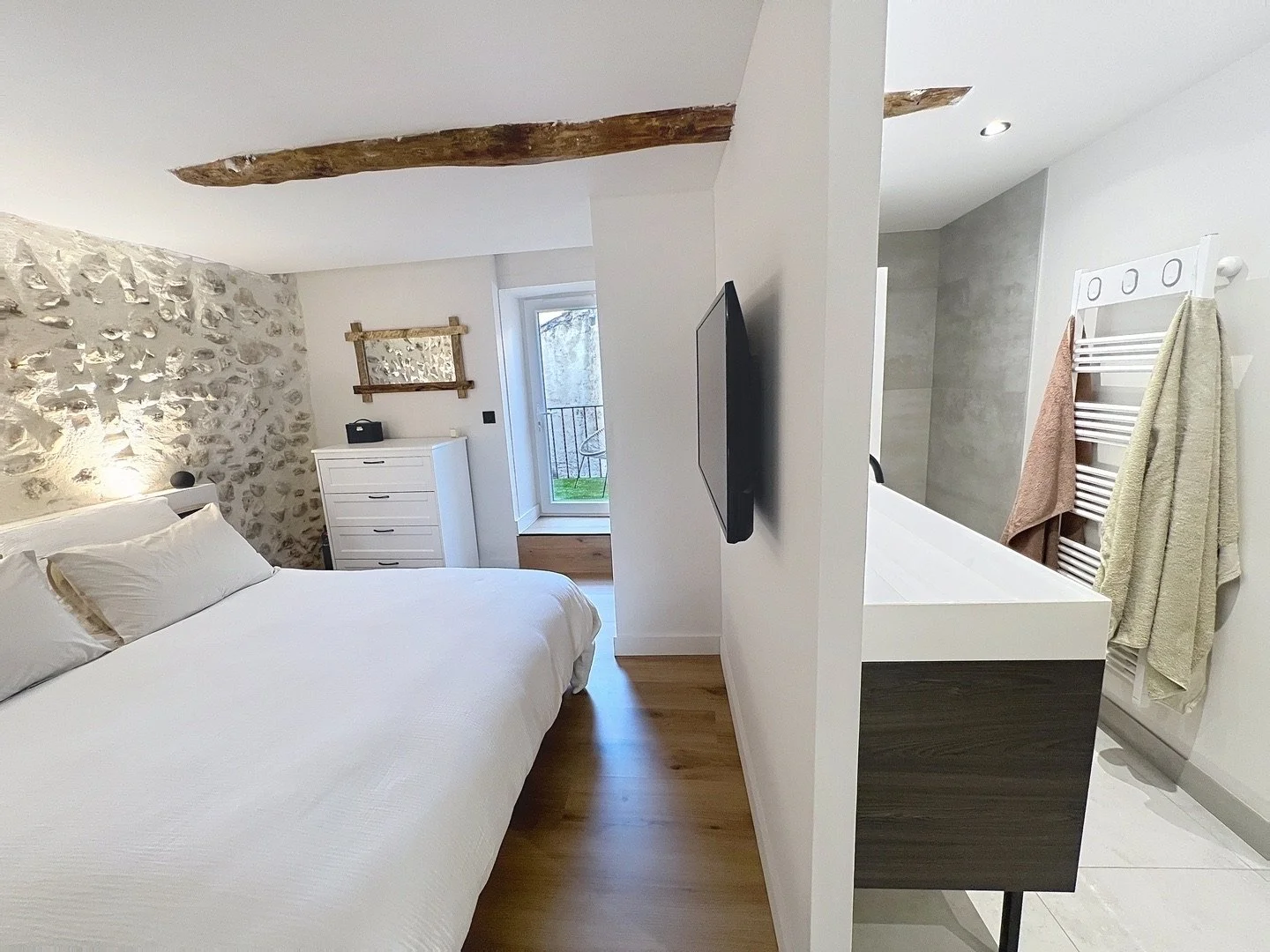 Chaque espace, pensé avec soin, marie le charme de l’ancien et le confort du contemporain dans une harmonie parfaite.