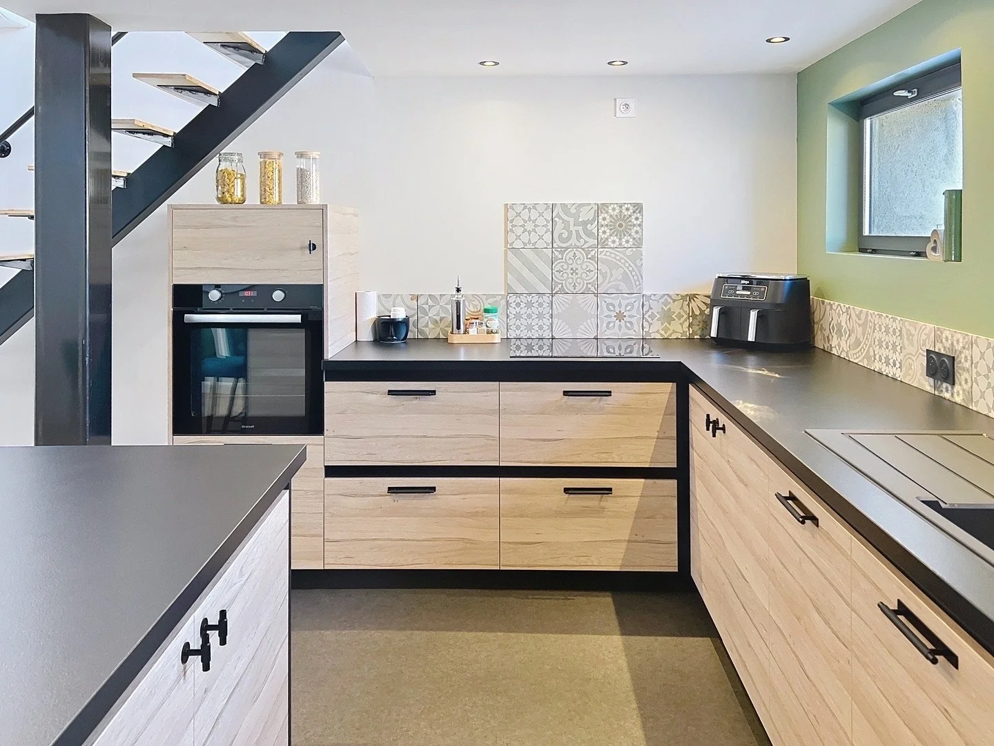 La pièce de vie, traversante Est-Ouest, offre une luminosité exceptionnelle. La cuisine neuve équipée avec îlot central s’ouvre sur un salon convivial, idéal pour recevoir. Les matériaux nobles – travertin, béton ciré, parquet – soulignent l’authenticité, l'élégace et la qualité de la rénovation.